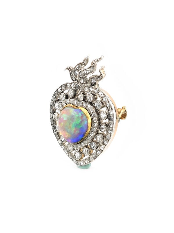 Antiker Opal Anhänger/Brosche um 1890 in Herzform