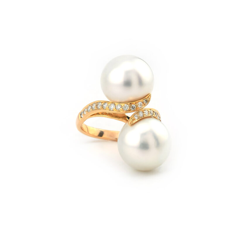 Diamantring Toi et Moi mit Südsee Perlen 750er